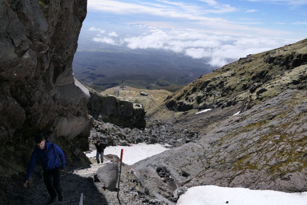 La primera parte del recorrido está notablemente bien acondicionada con escaleras, lo cual resulta de gran ayuda al atravesar el Valle Hongi. Aunque no deja de ser exigente, se agradece contar con estas escaleras. Aunque el tramo es considerablemente largo, definitivamente es preferible a subir por la escoria volcánica.